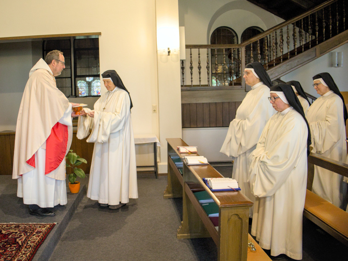 Am 1. Mai haben wir den Beneditktionstag von Mt. Hildegard nachgefeiert. Da der tatsächliche Benediktionstag am 23. April in die Zeit des Kongregationskapitel gefallen ist und Mt. Hildegard dort anwesend sein musste, haben wir den Feiertag am 1. Mai nachgeholt. Zu unserer Freude feierte mit uns Abt Vinzenz Wohlwend OCist aus der Abtei Mehrerau den Gottesdienst. Zum anschließenden Frühstück haben wir ihn herzlich eingeladen.