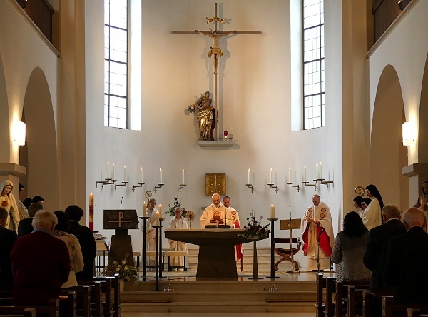 Am 11. Juli, dem Hochfest des Hl. Benedikt, dem Vater des abendländischen Mönchtums, feierten wir die Einweihung unseres neuen Noviziatsgebäudes. Es war ein Fest großer Freude und Dankbarkeit. Ein Fest des Rückblicks auf ein Jahr intensiven Bauens, und des Vorausschauens in ein lebendiges monastisches Leben im neuen Haus. Es war ein Fest der Mitfreude von Seiten vieler Gäste, zahlreicher Helfer und Förderer unseres Neubaus, und ein Fest der Dankbarkeit unsererseits für jede Hilfe, jede Form der Unterstützung und jedes aufmunternde Wort. Es war ein Fest mit viel Sonne im Herzen und strahlenden Begegnungen, wenn uns auch das Wetter mit Segensregen bedachte. Wir danken unserem Herrn Generalabt Mauro-Giuseppe Lepori, der mit uns den Gottesdienst feierte und die Segnung des Hauses vornahm. Und wir danken allen, die gekommen sind, um mit uns zu feiern oder auf andere Weise ihre Verbundenheit ausgedrückt haben.