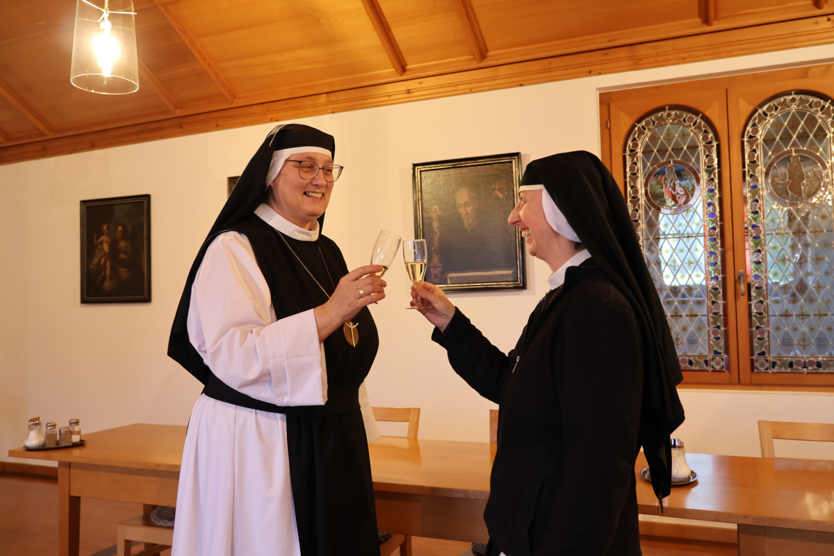 Am 9. November vor einem Jahr, begingen wir sehr feierlich die Benediktion unserer Äbtissin Sr. Maria-Stella. Nun feierten wir, etwas schlichter, den ersten Benediktionstag. Das lateinische Wort Benediktion kommt von benedicere - dem Wort "segnen". Mit dem Segen ist es eine vielfältige Sache: die Äbtissin wird benediciert, um Gottes Segen auszuteilen. Zugleich wird sie dabei selber mit Gottes Segen beschenkt. Möge Gottes Segen unsere Äbtissin stets begleiten, und sie so selber ein Segen sein für viele Menschen.