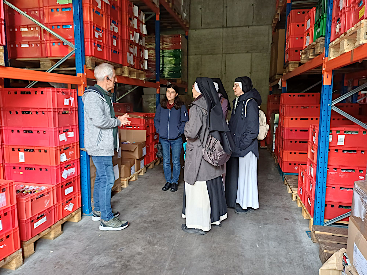 Das Märchen Tischlein deck dich ist weithin bekannt. In Vorarlberg wird mit dem Namen Tischlein deck dich noch etwas anderes assoziiert. Denn in Vorarlberg gibt es seit nun 20 Jahren die Tafel Tischlein deck dich. Durch gute persönliche Kontakte mit ehrenamtlichen Mitarbeitern von Tischlein deck dich und einer herzlichen Verbundenheit mit dem Verein hat es sich ergeben, dass eine kleine Gruppe von Schwestern der Einladung zu einer Besichtigung der Zentralstelle in Vandans gefolgt sind. Wir wurden vom Tischlein deck dich-Gründer Herrn Elmar Stüttler und Herrn Eugen Wenin sehr herzlich Willkommen geheißen. Wir erhielten Einblicke in die Lagerhallen und in die Abwicklung der Anlieferung der Waren bis hin zur Wiederverteilung an den Ausgabestellen. Wir hatten keine Ahnung, in welchen Größendimensionen hier Lebensmittel vor der Vernichtung gerettet und bedürftigen Menschen zur Verfügung gestellt werden. Und bei allem Bemühen um die gerechte Verteilung der Lebensmittel geht des den Leuten bei Tischlein deck dich, die von zahlreichen Ehrenamtlichen unterstützt werden, doch um die Menschen, denen diese Lebensmittel zur Verfügung gestellt werden. Was uns Schwestern dabei besonders berührt hat, ist die große Begeisterung derer, die sich in diesem Verein für die gute Sache engagieren. Für uns war dieser Tage nicht nur ausgesprochen informativ. Wir haben diese Exkursion als wirkliche Bereicherung erlebt, mit vielen wunderbaren Begegnung und Eindrücken, die uns noch lange begleiten werden. Wir sagen Herrn Elmar Stüttler und Herrn Eugen Wenin herzlichen Dank. Wir beten gerne für dieses großartige Werk.
