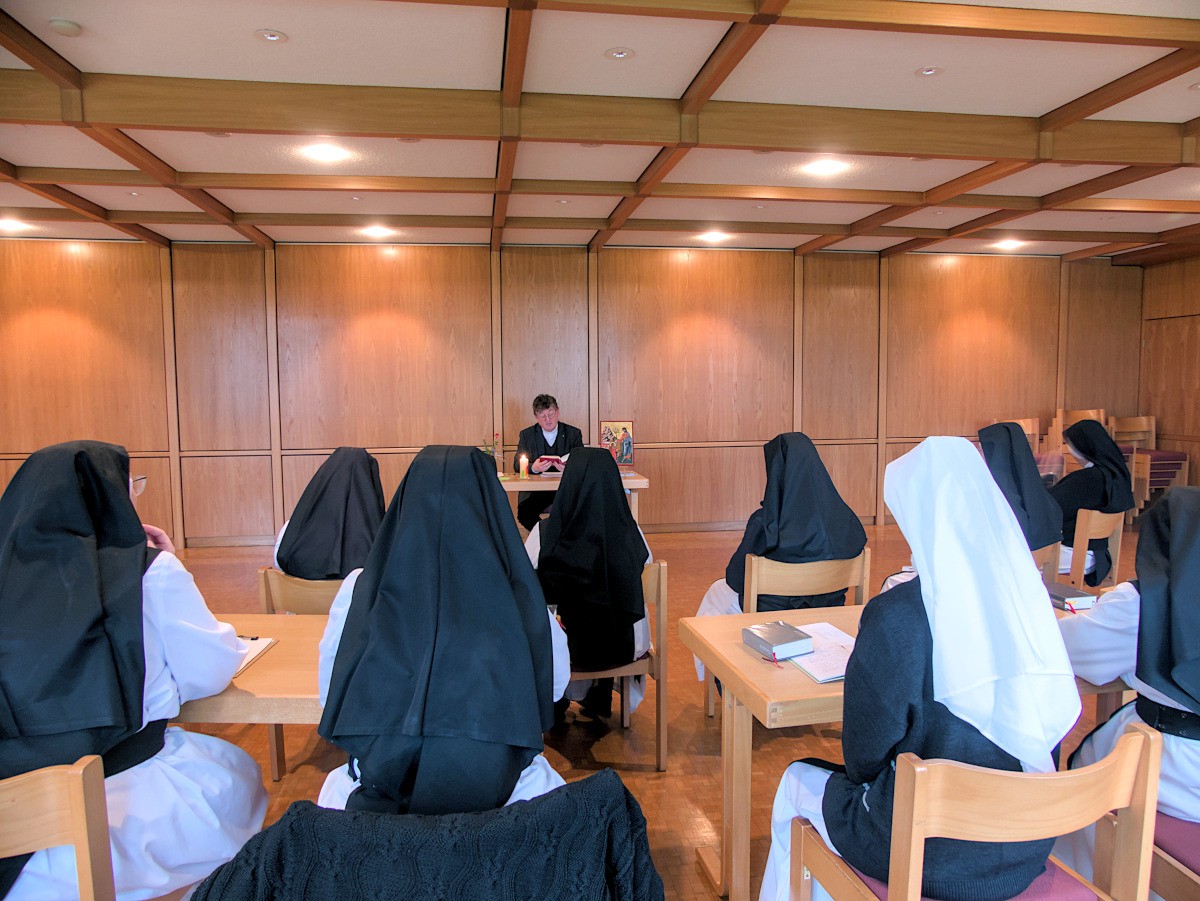 Ostern ist für uns Christen ein existenzielles Fest. Wir haben es intensiv gefeiert und uns in sein Geheimnis vertieft. Heuer hatten wir die Freude, dass wir die Osterwoche in der Stille unserer Konventexerzitien verbringen konnten. Regens Agnell Rickenmann aus Luzern hat uns durch diese Tage begleitet. In der Stille das Osterfest nachklingen lassen, uns weiter darin vertiefen und darin den Grund unserer Freude und Zuversicht zu erleben, hat uns allen gut getan. Eingebettet in das intensive Frühlingserwachen und Aufblühen von Baum, Busch und allerlei Blumen, waren es schlichtweg Tage des Genießens, der Erholung für Leib und Seele und der Vertiefung in unser Leben als Ordensfrauen hier in Mariastern.