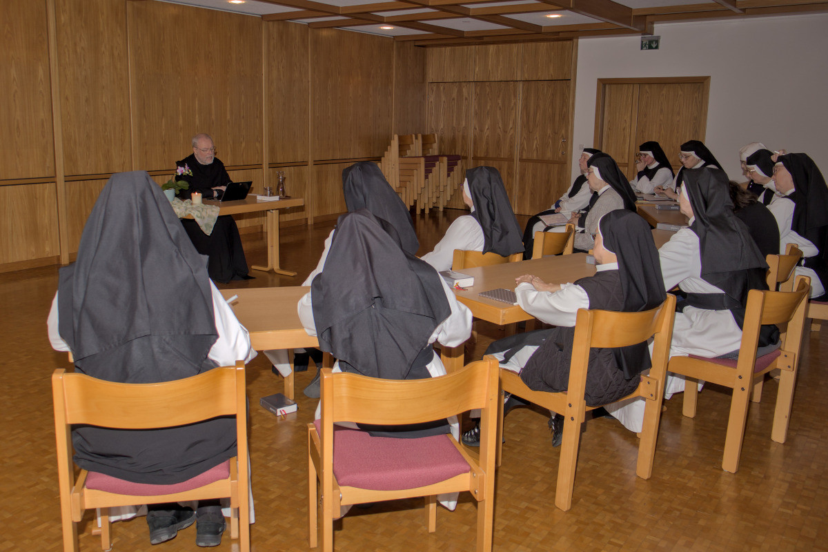 Gleich am Anfang der Fastenzeit haben wir heuer unsere Konventexerzitien gehalten. Die Exerzitien geben uns Raum, als Gemeinschaft in der Stille, mit den Impulsen des Exerzitienbegleiters, miteinander unterwegs zu sein und uns im geistlichen Leben zu vertiefen. Die alltäglichen Aufgaben werden in dieser Zeit auf das notwendigste reduziert, damit wir uns in Gebet und Betrachtung, in der Stille und Muße vermehrt dem zuwenden können, was die Seele unseres Lebens im Kloster ist: unsere Beziehung mit Christus.