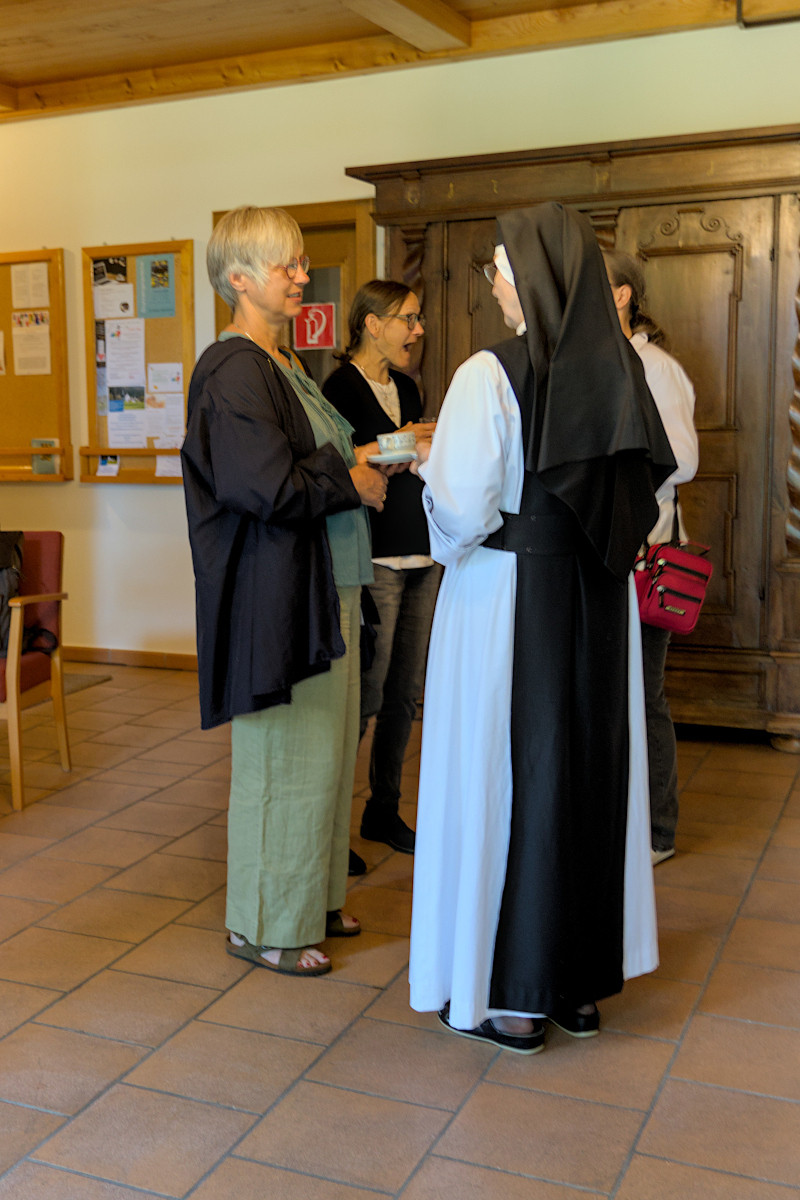 Im Laufe der Jahre haben sich eine beachtliche Zahl an Frauen durch das Oblationsversprechen an unser Kloster gebunden. Um die Verbundenheit zu stärken, findet einmal im Jahr der Oblatinnentag statt. Heuer war es nur einer kleinen Schar der Frauen möglich am vergangenen Samstag, 14. Juni, daran teilzunehmen. Klein aber fein, könnte man diesen Tag nun kurz zusammenfassen. Das Thema, dem wir uns dabei gewidmet haben, war die Hoffnung. Miteinander Gottesdienst feiern, Geistliche Impulse, Austausch, miteinander Essen und gemeinsam Sein - so war dieser Tag geprägt von herzlicher Gemeinschaft. Die Verbundenheit bleibt über diesen Tag hinaus. Und wir freuen uns, unsere Oblatinnen bei den unterschiedlichsten Gelegenheiten wieder bei uns begrüßen zu dürfen.